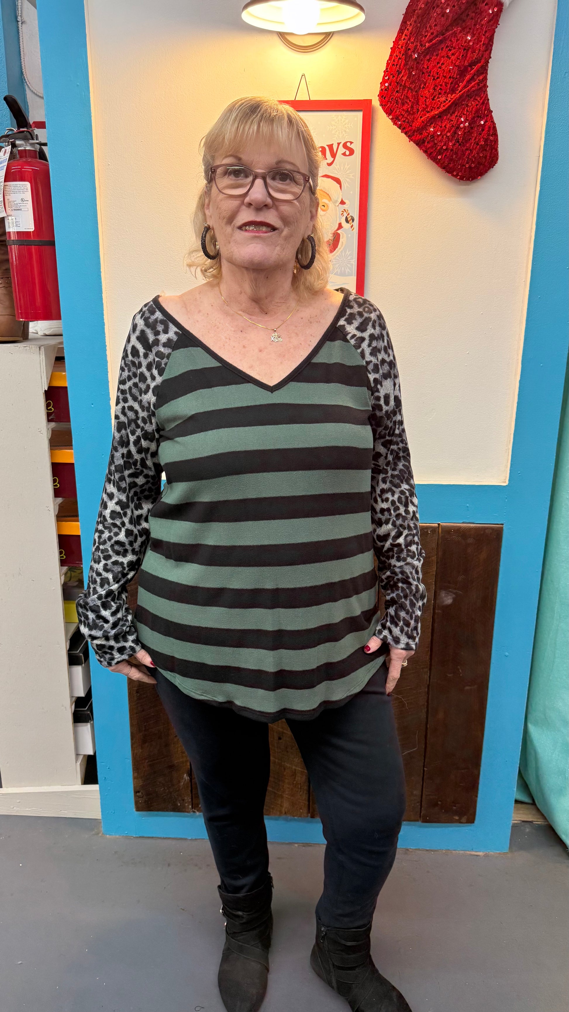 A subtle Christmas top you can wear anytime! Round hem. True to size fit. Mom is wearing the 1x.