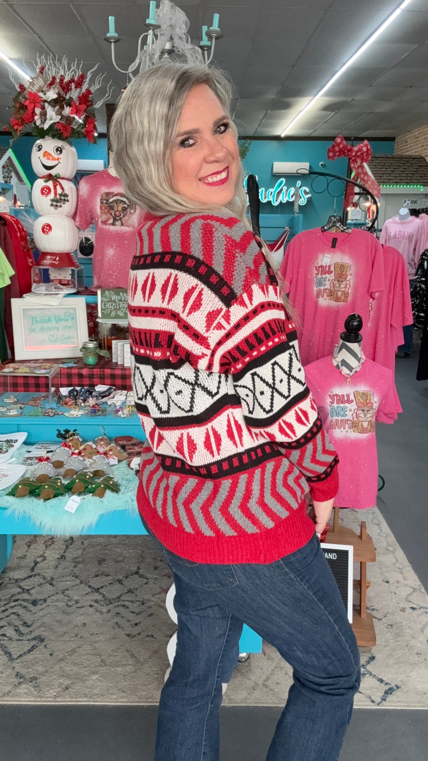 This is the perfect sweater for all those cold nights by the fire. One size fits S-L. Stretchy with working buttons.